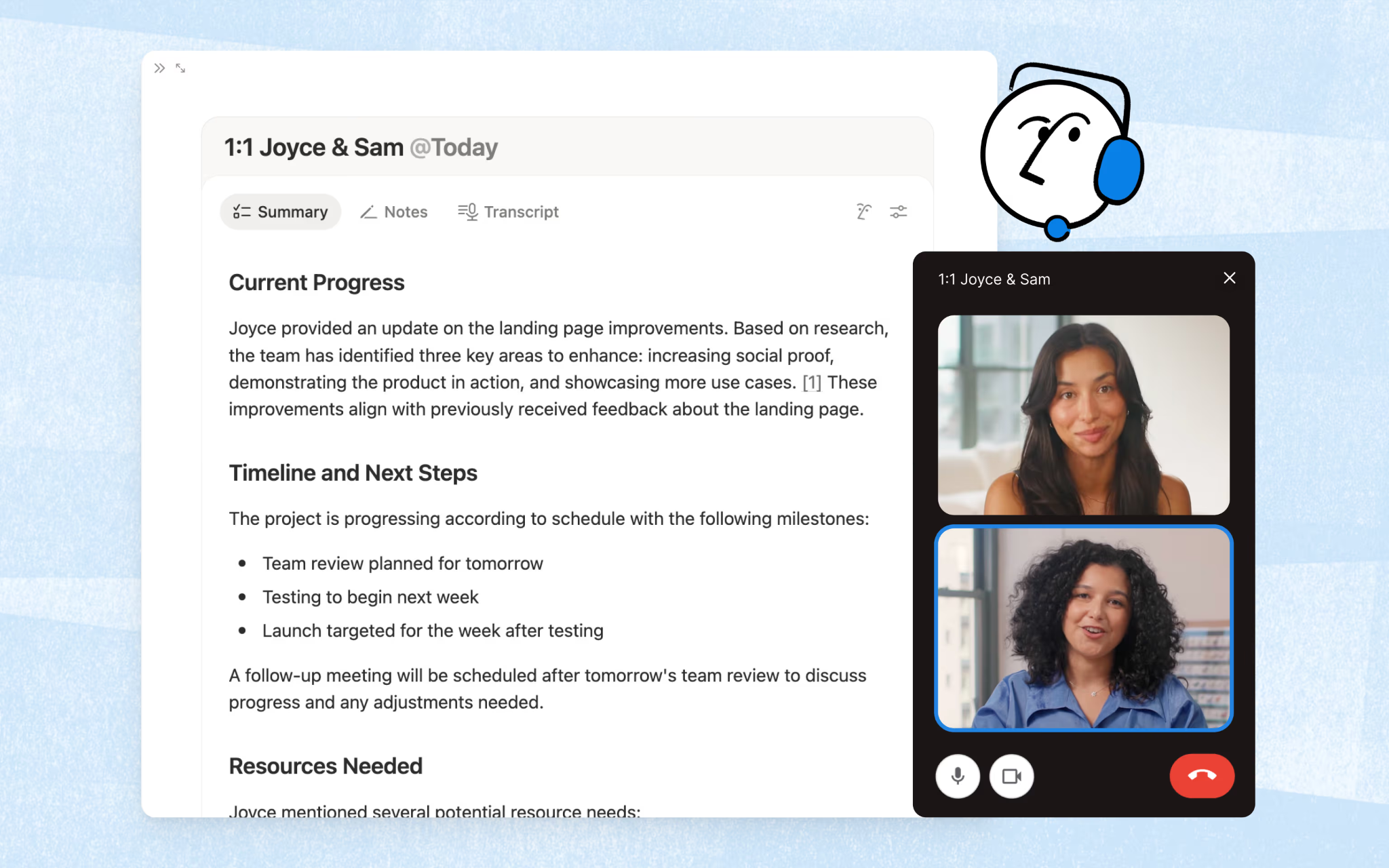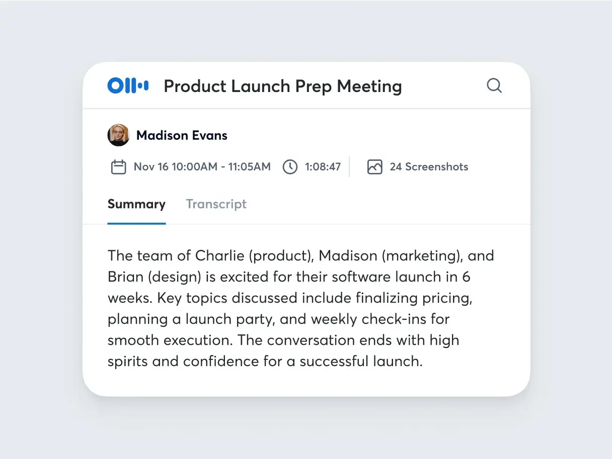 • Search your meeting history: Ask "What did Sarah say about the budget?" instead of scrolling through months of notes